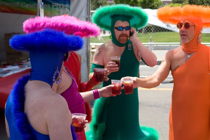 Hog Island Oyster Farm. It was one of the best birthdays ever. I got to buy all the oysters I wanted and shucked them on the bay while drinking a beer. It was Fabulous! Speaking of Fabulous, did I mention Pride Week is late June? The whole city gets together to celebrate. It's a lot of fun and a great place to take pictures. On with the pictures!