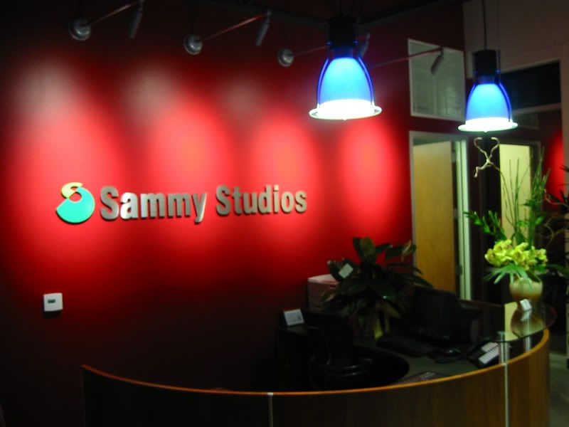On Sept 20th 2003 Donna and I got to go to a grand event. It was the official grand opening of Sammy Studios Carlsbad. The building was beautiful and I have a feeling a ton of dough was spent on this party. Little did we know at the time that this studio in it's current form would be short lived. 2 years later Sammy bowed out of Carlsbad for a few reasons and Sammy Studios became High Moon Studios. High Moon is still around and you can go to their website to read about the 2 games that they have done since 2005.